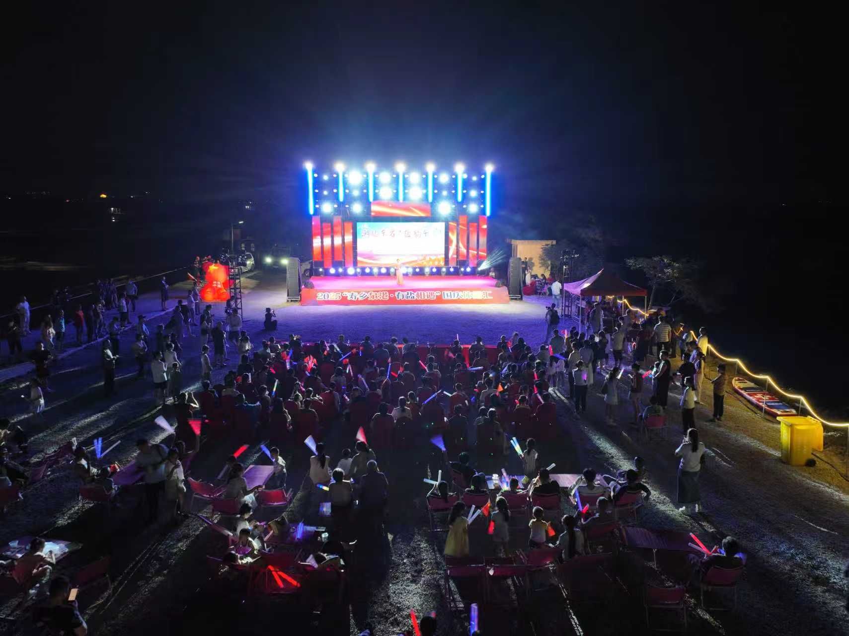 夜幕降临,灯光如银河倾泻,音乐随风飘荡,与虫鸣交织,营造出浪漫惬意的盐田夜景。
